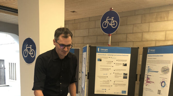 Die Auswertungen der Bürgerbeteiligung sind im Tübinger Rathaus ausgestellt. Dort ist auf einem Multimediatisch ein Stadtplan abgebildet, auf dessen Fahrradrouten die Hinweise nachzuverfolgen sind. Plakate informieren zudem über wichtige Schritte auf dem Weg der Umsetzung und Planung des Projekts. (nov)