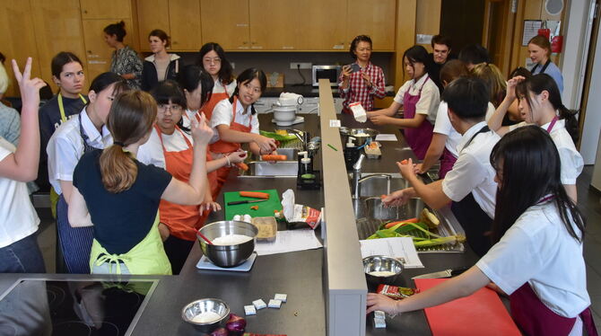 Begegnung mit der schwäbischen Küche: Taiwanische Jugendliche beim Kochen mit Quenstedt-Schülern. FOTO: MEYER