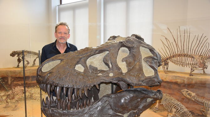 Mein Freund, der T. Rex: Buchautor Bernhard Kegel im Institut in der Tübinger Sigwartstraße, wo viele Funde ausgestellt sind.