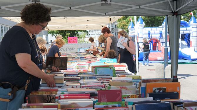 Die aus dem Bibliotheksbestand aussortierten und gespendeten Bücher fanden guten Absatz. »Es läuft prima«, sagte Canan Klagges, Leiterin der Stadtbücherei. Normalerweise sei die Aktion im Gebäude. »Wir haben dieses Jahr sehr viele Spenden bekommen.« Neben verlängerten Ausleihzeiten gab es bereits vormittags für Kinder Nintendo-Spiele und später war eine Hüpfburg im Hof aufgebaut.