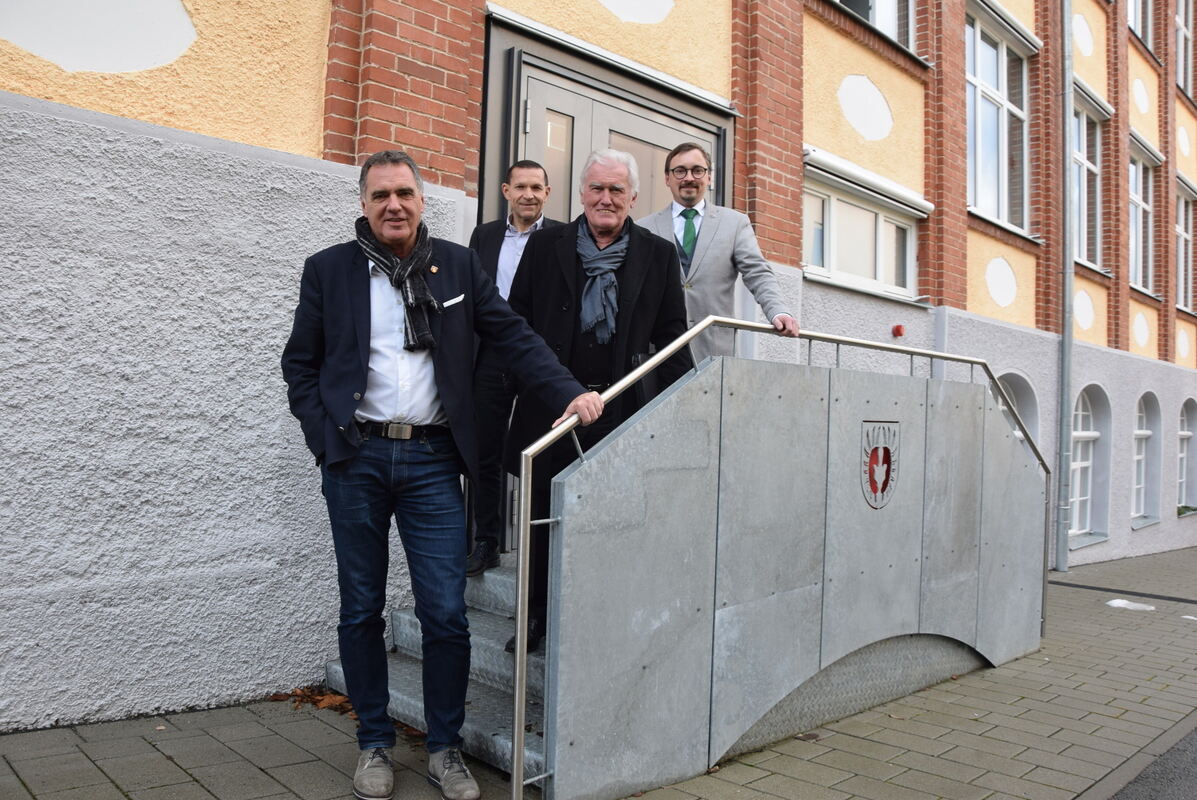 Für das Pressefoto lächeln sie freundlich. Dabei ist den Bürgermeister Thomas Hölsch, Gunter Schmid, Joseph Reichert und Steffen Heß (von links) alles andere als zum Lachen zumute. FOTO: WALDERICH