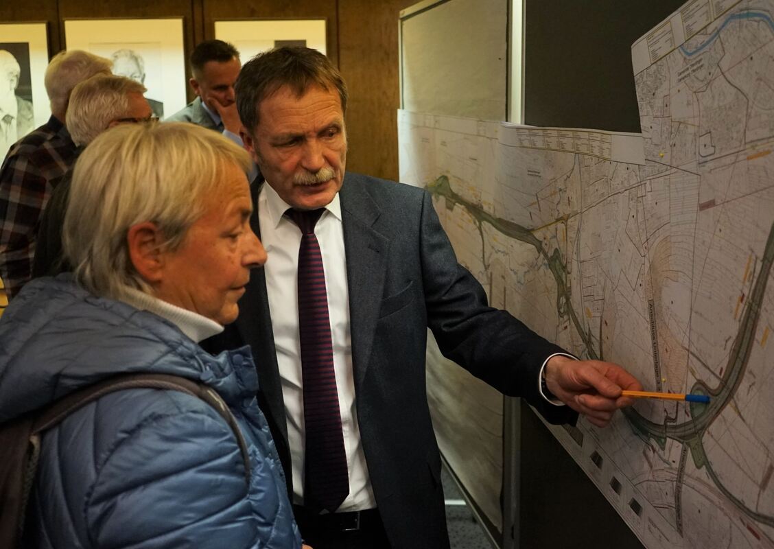 Bei der Anhörung zur B 27 in Mössingen beantwortete Josef Bild, Abteilungsleiter Straßenwesen und Verkehr beim Regierungspräsidium Tübingen, Fragen von Bürgern an der Stellwand. FOTO: STRAUB