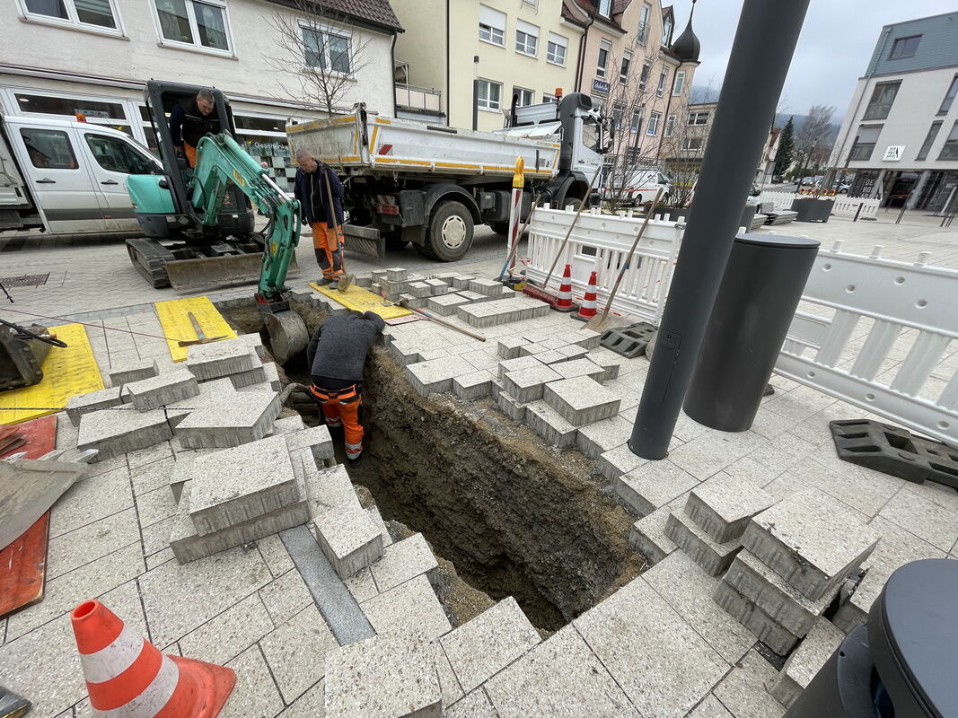 Kein Rohrbruch. Ganz im Gegenteil: Am neuen Mössinger Marktplatz wirl ein Trinkwasserspender installiert. FOTO : MEYER