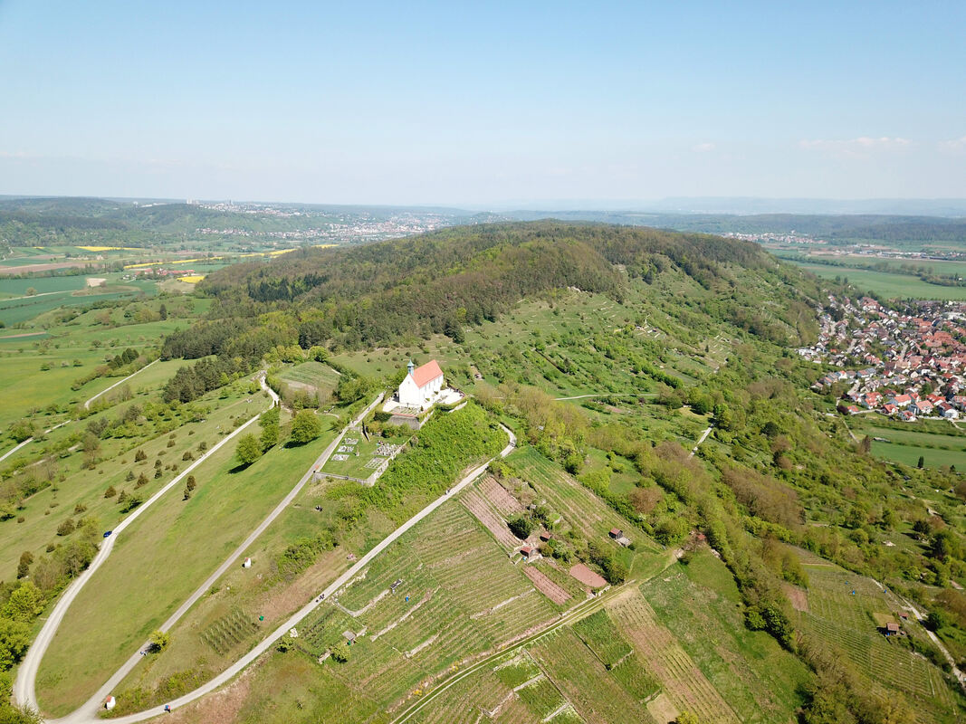 Mit einer Drohne hat Julia Gäßner den gesamten Spitzberg fotografiert. Der artenreiche Bergrücken mit der Wurmlinger Kapelle war schon immer ein Ausflugsziel. FOTO: GÄSSNER