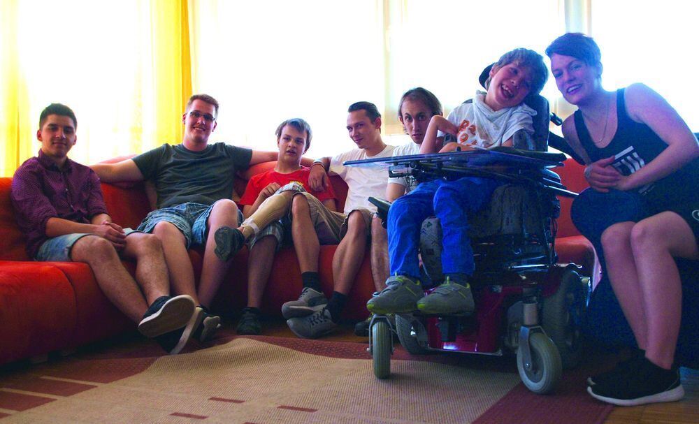 Jason, Robin, Adam, Felix, Turhan, Pierre und Lena (von links) verbrachten im Internat der Dreifürstensteinschule viel Zeit miteinander und konnten voneinander lernen. FOTO: KBF