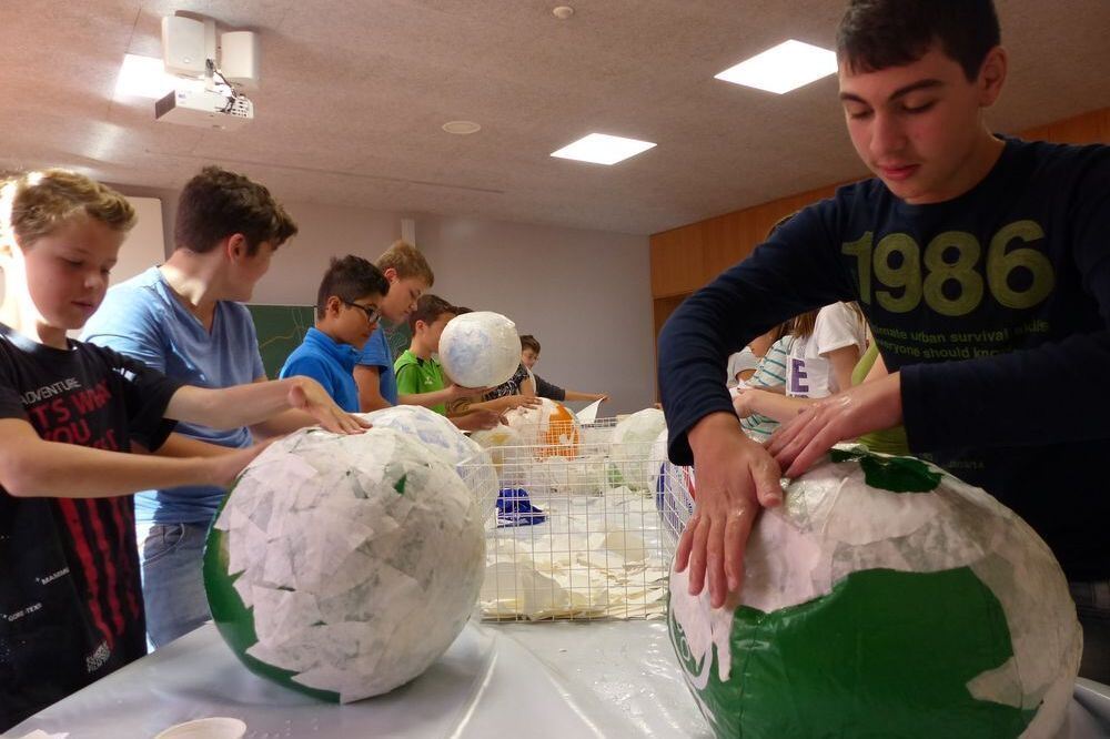 Mit Papier und Kleister auf Bällen entstehen Rohlinge für die Traumwelten der Schüler. FOTO: WEBER