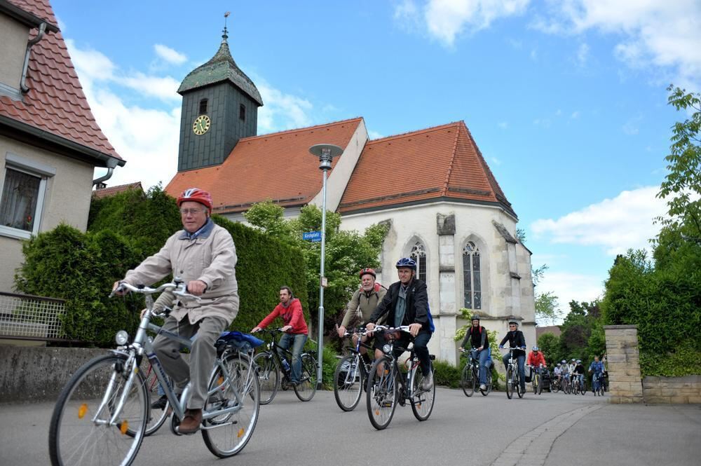 Ausgangspunkt der geschichtlichen Radtour unter der Leitung von Mark Schlotterbek war die Wankheimer Jakobuskirche.