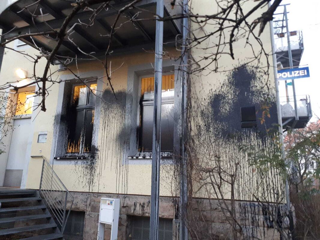 Laut Polizeipressesprecher Christian Wörner wird die Polizei immer wieder Opfer von Sachbeschädigungen. Ein derartiger Schaden sei aber bislang noch nicht verursacht worden. Der Eingangsbereich und die Fassade des Gebäudes am Lorettoplatz wurden auf einer Fläche von etwa 20 Quadratmetern beschmutzt. Der Sachschaden wurde bislang noch nicht genau beziffert, die Polizei geht allerdings von mehreren Tausend Euro aus.