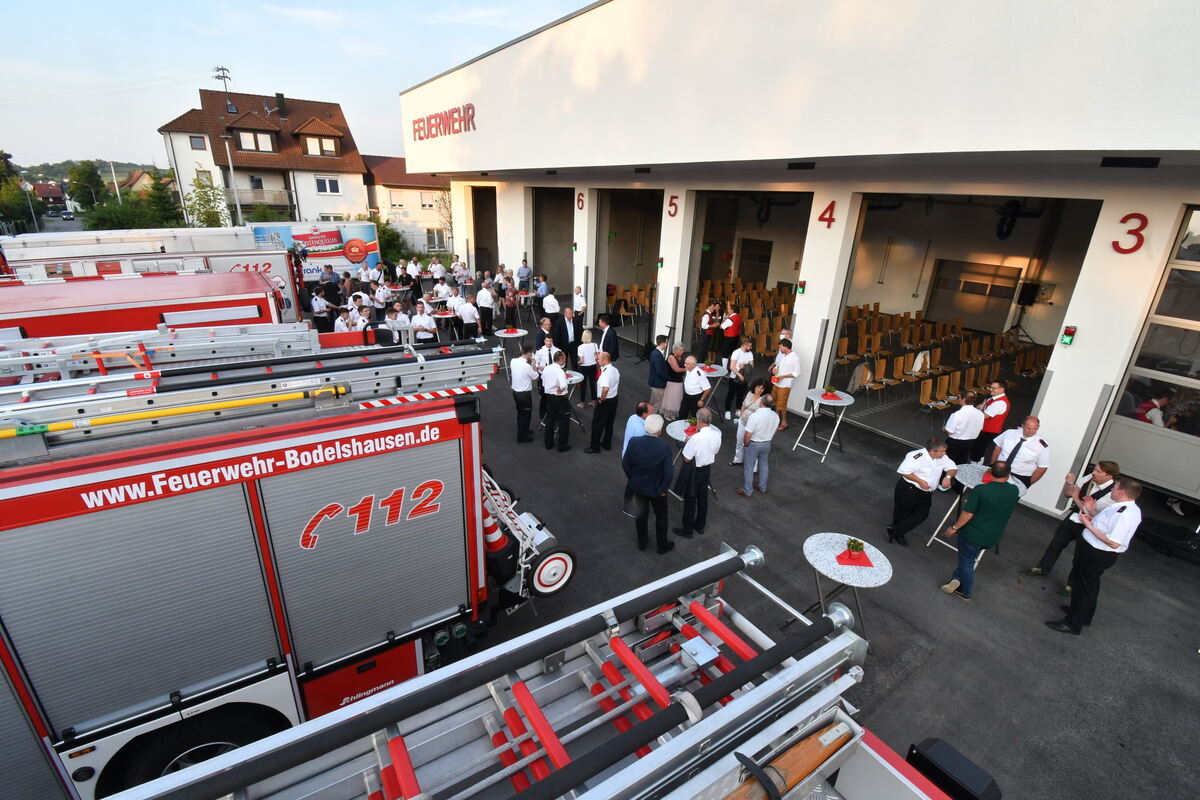 Die Bodelshausener Wehr verfügt nun über ein hochmodernes Feuerwehrhaus. Am Wochenende wurde es eröffnet. FOTO: MEYER