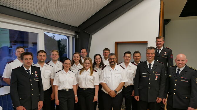 Beförderungen und Ehrungen sind immer ein wichtiger Teil bei den Hauptversammlungen der Feuerwehren - so auch am Freitagabend in Ofterdingen, als die Einsatzkräfte gemeinsam auf ein »anspruchsvolles Jahr 2024« zurückblickten.