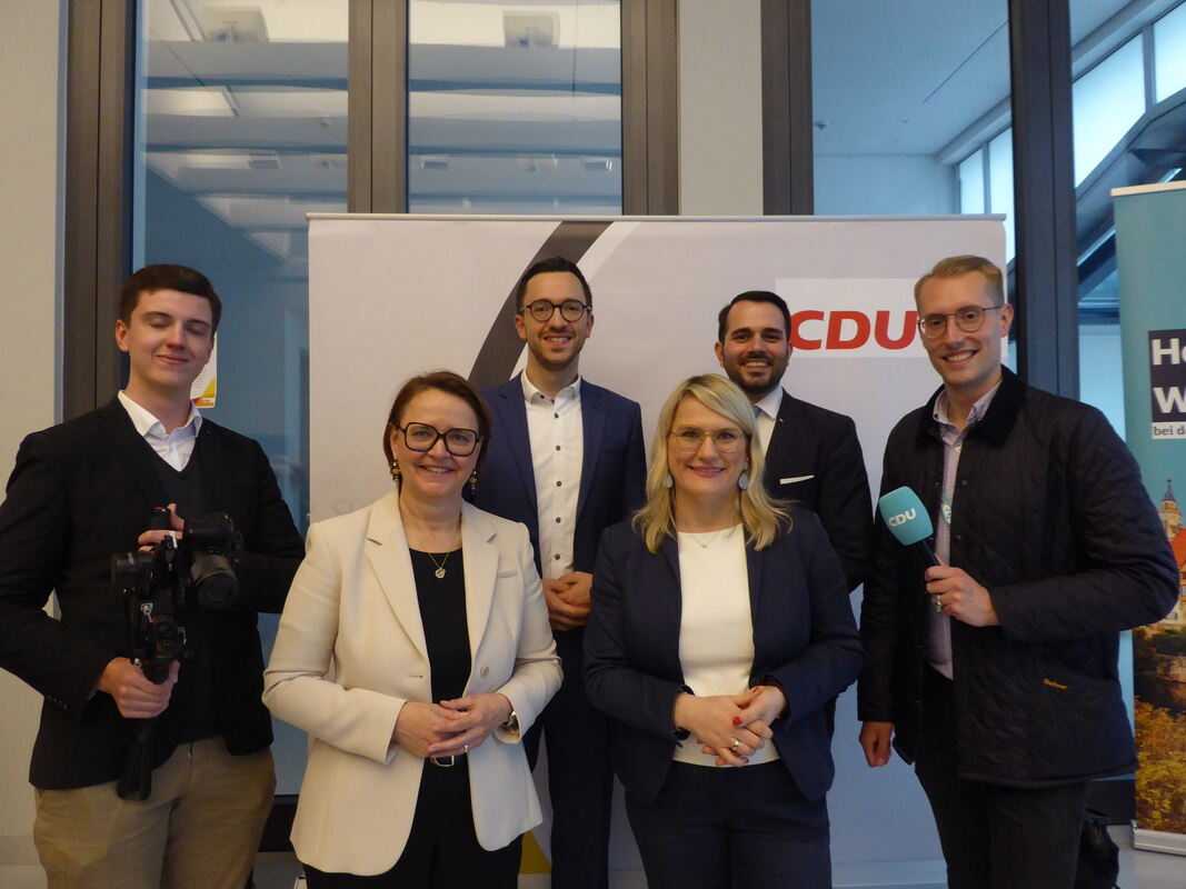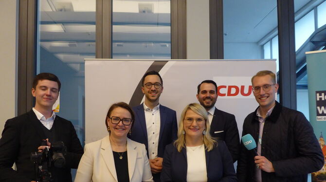Beim Jahresempfang der CDU in Tübingen: Hinten links Christoph Naser und Armin Mozaffari Jovein. Davor stehen Annette Widmann-Mauz und und Christina Stumpp. FOTO: FRIEDRICH