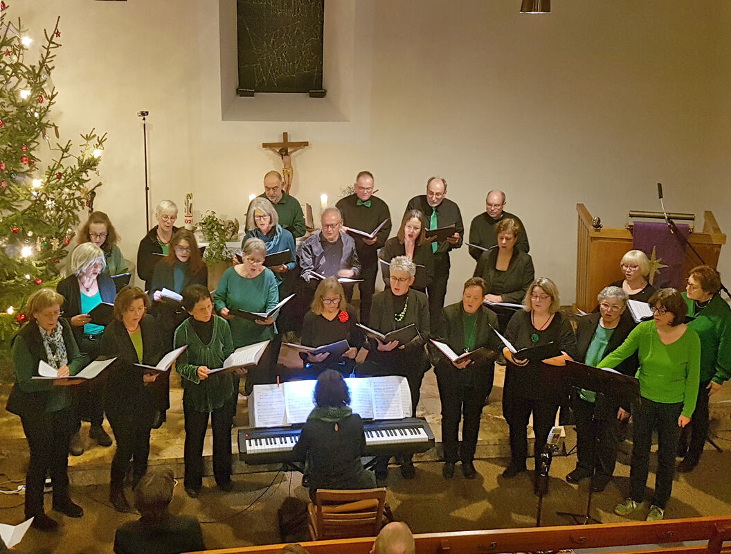 Den Schluss machte der Gastgeber. Erst sang Chormitglied Tanja Herr begleitet von Leiterin Stefanie Schmid am Klavier, das Solostück »Winter Song«. Danach verzauberten die Sängerinnen und Sänger des Chors Fortissimo die Gäste mit den Liedern »Mary Did You Know«, »God Rest You Marry Gentlemen« und »Winter Wind«. Nach weiteren alpenländischen Weihnachtsliedern und einem zweiten Soloauftritt von Tanja Herr verabschiedeten sich die Glemser Chöre mit dem gemeinsam gesungenen Schlusslied »Tochter Zion«, in das das Publikum einstimmen konnte.