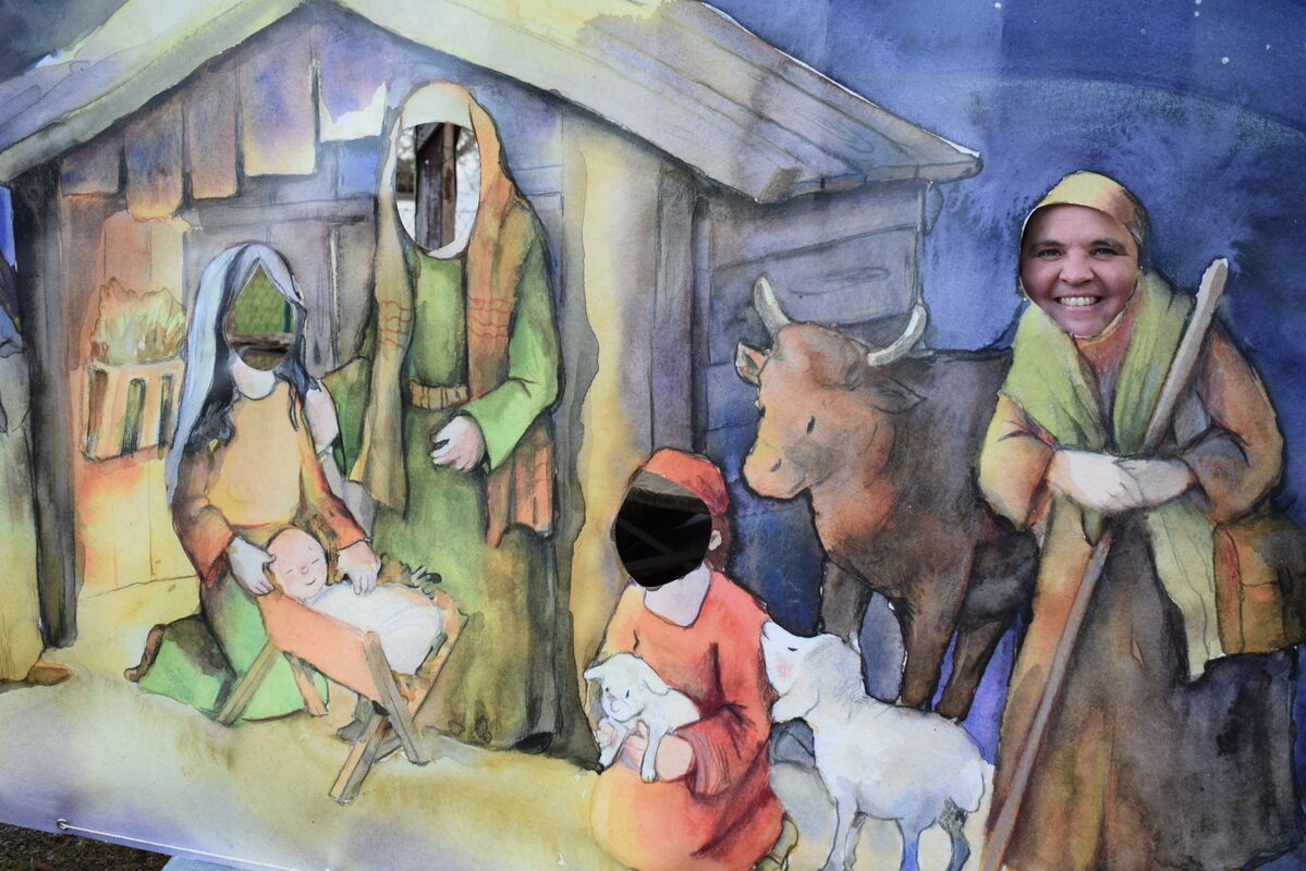 Krippenstation am Bouleplatz mit Diakonin Susanne Mehlfeld als Hirtin.
