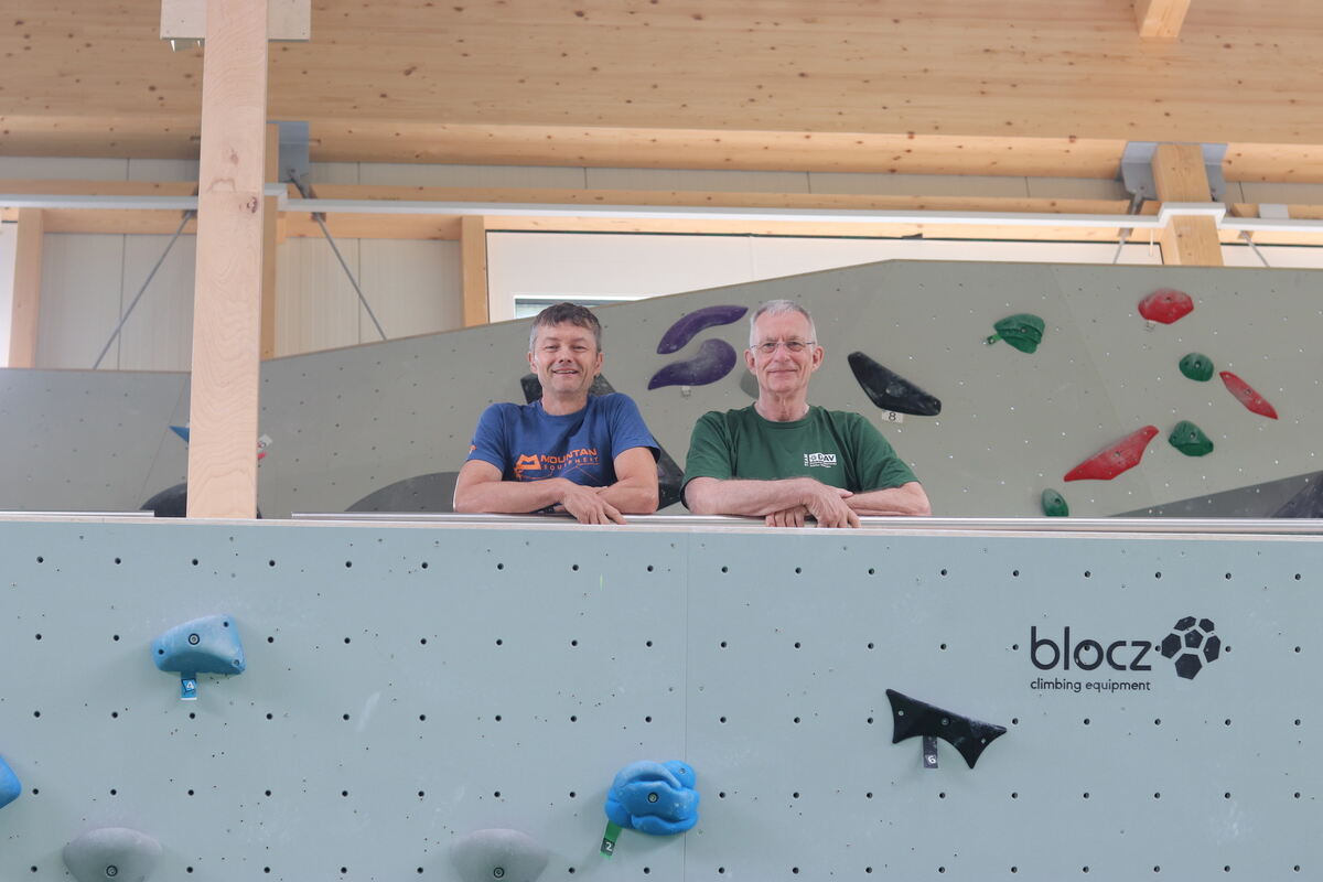Manne Aberle (links), Betriebsleiter in der Tübinger Boulderhalle, ist im B12 zu Hause. Vereinsvorsitzender Dieter Porsche stand schon auf den ganz hohen Bergen im Himalaya.