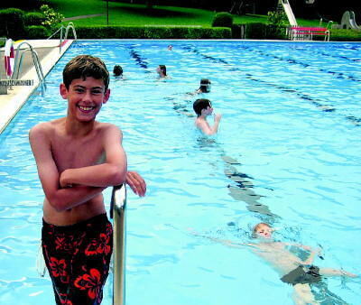 Spielplatz für alle Sommeraktivitäten: Felix im großen Becken des Öschinger Waldfreibads.