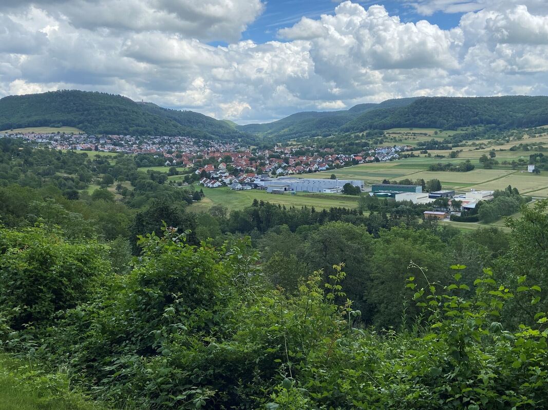 An den Albtrauf geschmiegt: Öschingen vom Schlossbuckel aus gesehen. Je nachdem, welche Richtung die Wandersleut' einschlagen, ist der Mössinger Teilort entweder die erste oder letzte Station.