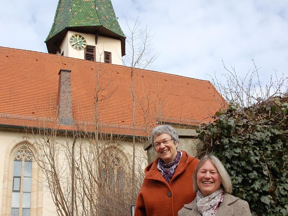 Die alte und die neue Vorsitzende des Kusterdinger Kirchengemeinderats: Mechthild Ritter (hinten) und Anette Diebold vor der Marienkirche.
