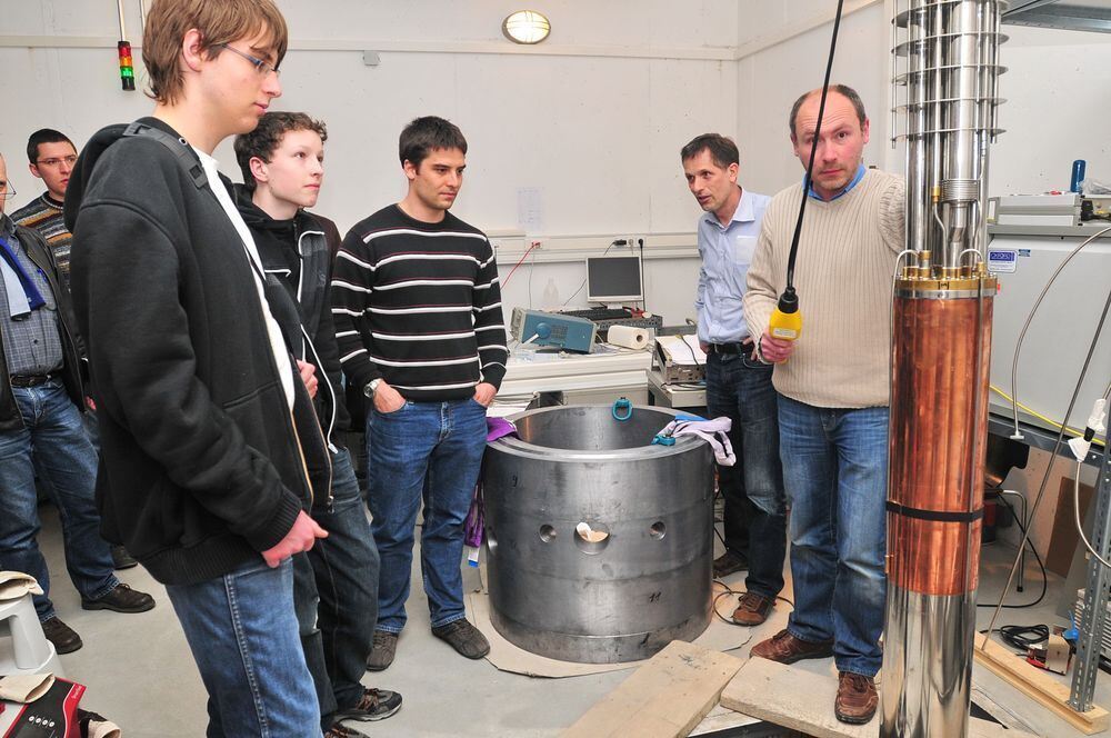 Blick ins Untergrund-Labor: Josef Jochum (zweiter von rechts) und sein Team führen vor, wie's geht. GEA-FOTO: MEYER