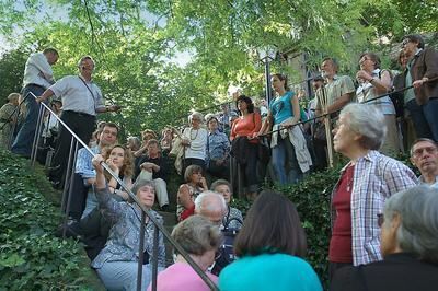 Kulturamtsleiter Wilfried Setzler berichtet im Garten beim Hölderlinturm über das Leben des Dichters.