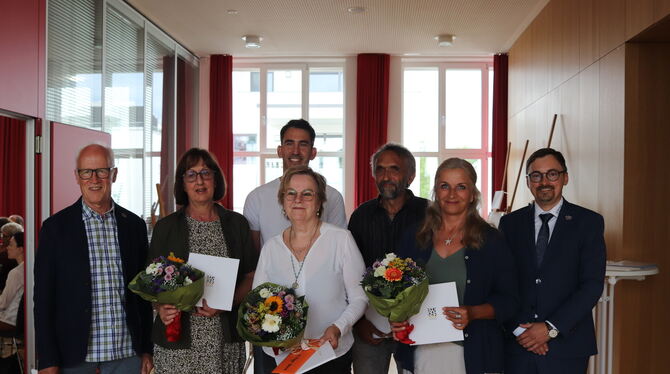 Der neu gewählte Gomaringer Gemeinderat: Nadja Rensch, Gabriele Häfele, Elena Schreibauer, Tobias Droste, Bürgermeister Steffen heß, Daniel Leibßle und Michael Renz (erste Reihe von links). Gabriele Häfele, Christa Stöhr, Jochen Pflumm, Hartmut Rombach, Daniela Diestel, Heinz Schuker, Gudrun Bühler, Maximilian Föll, Petra Rupp-Wiese, Stephan Walter, Kirsten Gaiser-Dölker, Martin Kuttler, Walter Junger und Günter Föll (hinten, von links).