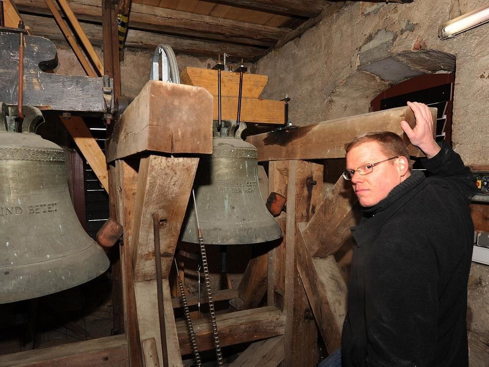 Seit der Renovierung der Glockenstube ist der Klang viel angenehmer: Christoph Schapka im Jettenburger Kirchturm.