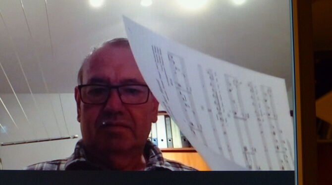 Tenor Ernst Dumendiak bei der Zoom-Probe des Liederkranzes. SCREENSHOT: WEBER
