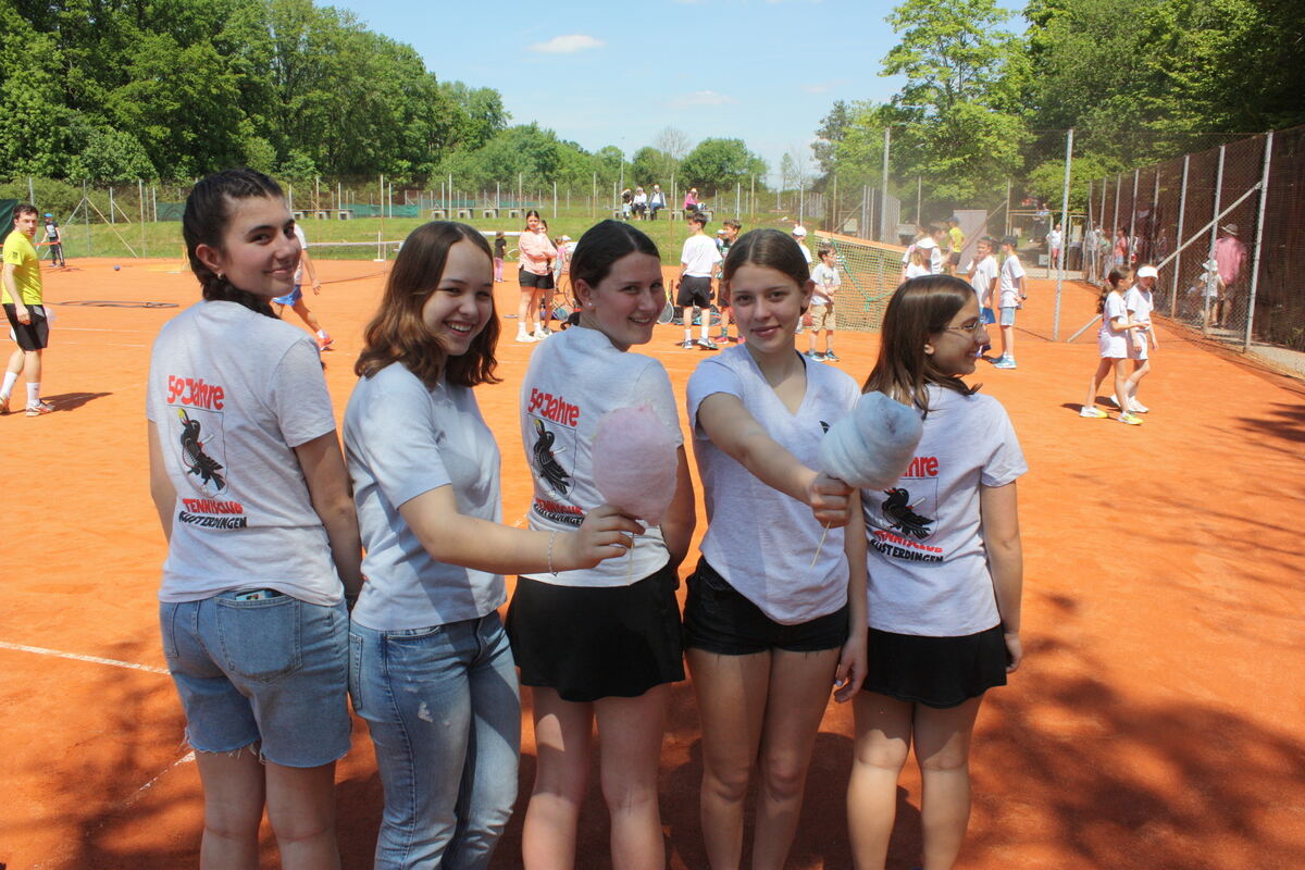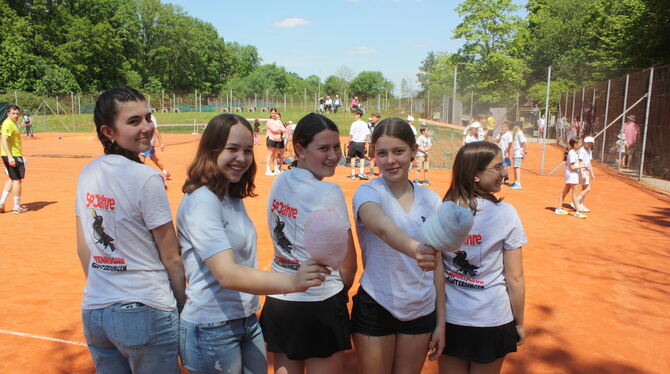 Alina Divljak, Jolanthe Döllgast, Julia Schneck, Romy Buckendahl und Pauline Reiff (von links), präsentierten die neuen T-Shirts und: Zuckerwatte!