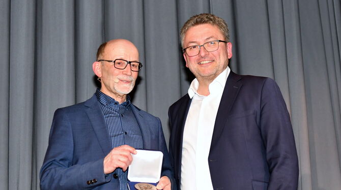 Deutschlands einziger Bergrutschführer Armin Dieter mit Mössinger Ehrenplakette geehrt