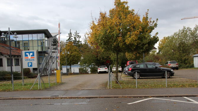 Ein Grundstück für ein Mehrgenerationen-Wohnprojekt mitten im Gomaringer Ortskern? Die Volksbank bestätigt Überlegungen, das Parkplatz-Gelände in der Bahnhofstraße zu bebauen. Konkretes gebe es aber noch nicht. FOTO: FÖRDER