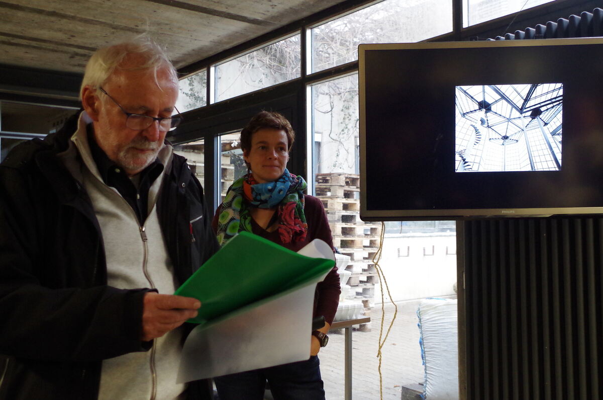 Der Mössinger Architekt Ernst Görz erklärt die Architektur im Botanischen Garten in Tübingen. FOTO: JOCHEN