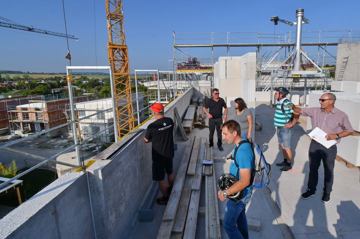 Vom höchsten Gebäude im neuen Ofterdinger Wohnviertel im Gartencarré verschafften sich die Gemeinderäte einen Überblick. FOTO: MEYER
