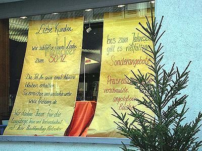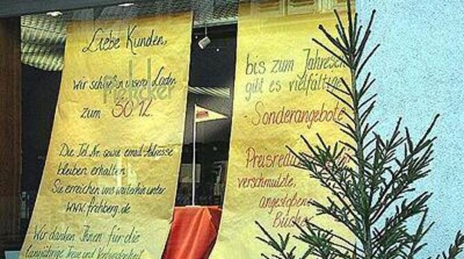 Großformatige Ankündigung in der Neuen Straße: Die Tübinger Buchhandlung Pietzcker macht zu.