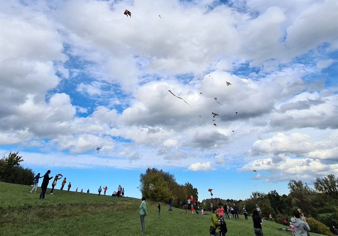 Am frühen Nachmittag waren bis zu 20 Drachen gleichzeitig in der Luft. Insgesamt 50 Leute versuchten zupfend und ruckelnd, ihre Drachen zum Fliegen zu bewegen und rannten den Fluggeräten hinterher, als sie schließlich abhoben.