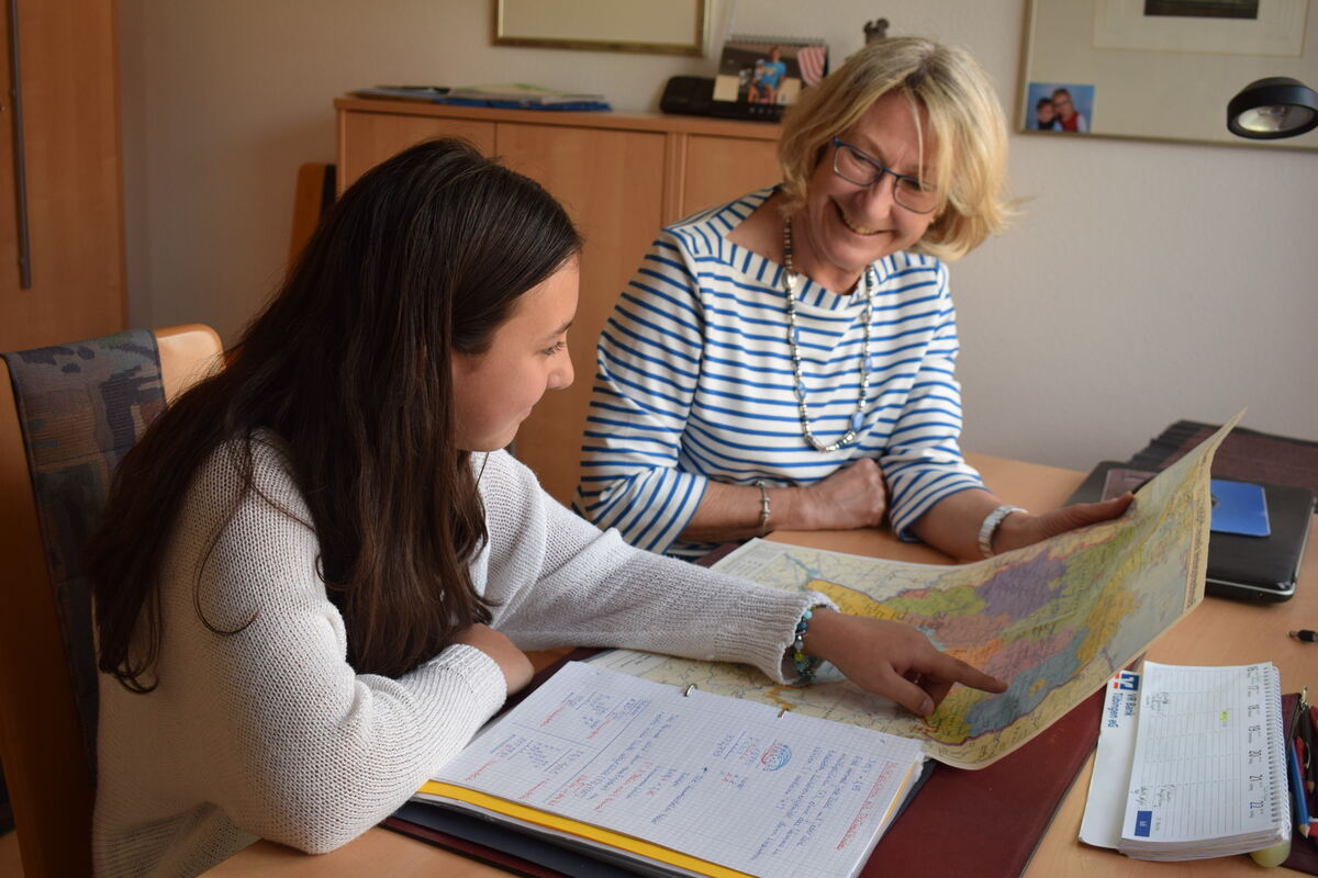 Bianka Bredow von Tandem in ihrer Wohnung in Kusterdingen mit ihrem Schützling. FOTO: STÖHR