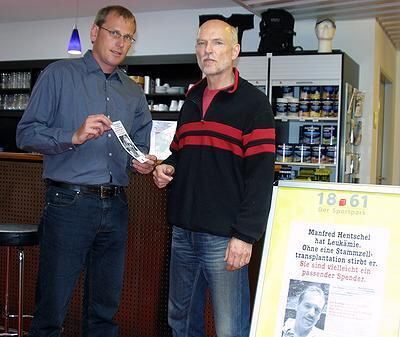 Auch im Vereinslokal des TV Rottenburg steht ein Plakat mit der Aufforderung, an der Hilfsaktion teilzunehmen. Und Geschäftsführer Norbert Vollmer und Badminton-Trainer Thomas Focken verteilen auch Flugblätter.