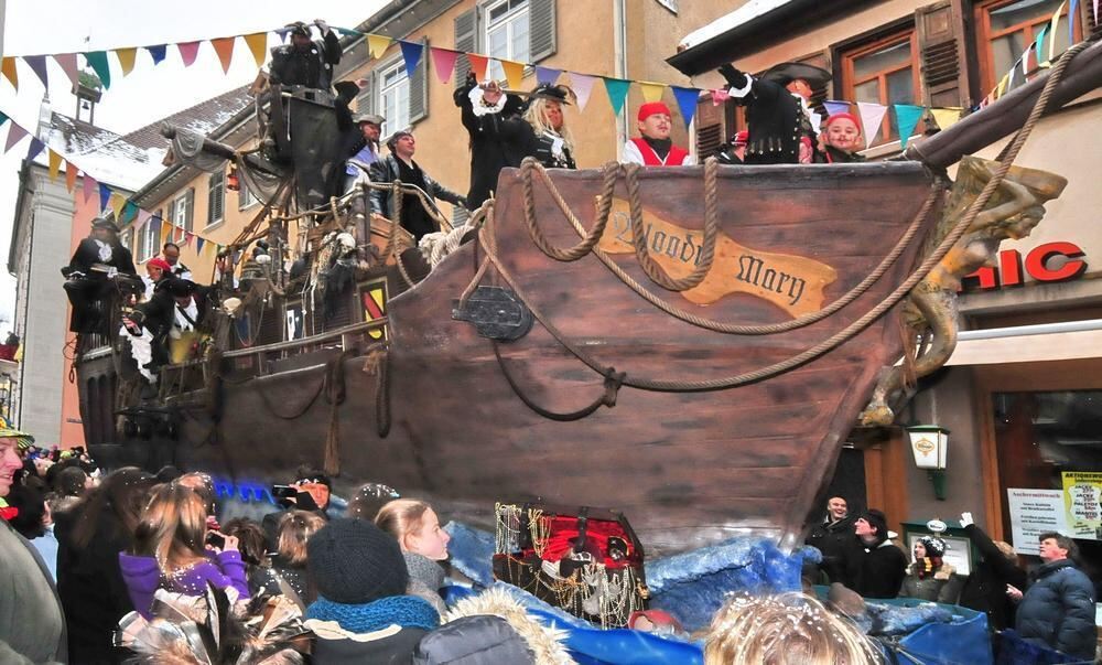 Mit der »Bloody Mary« steuerte zum ersten Mal ein Piratenschiff durch die enge Rottenburger Altstadt.