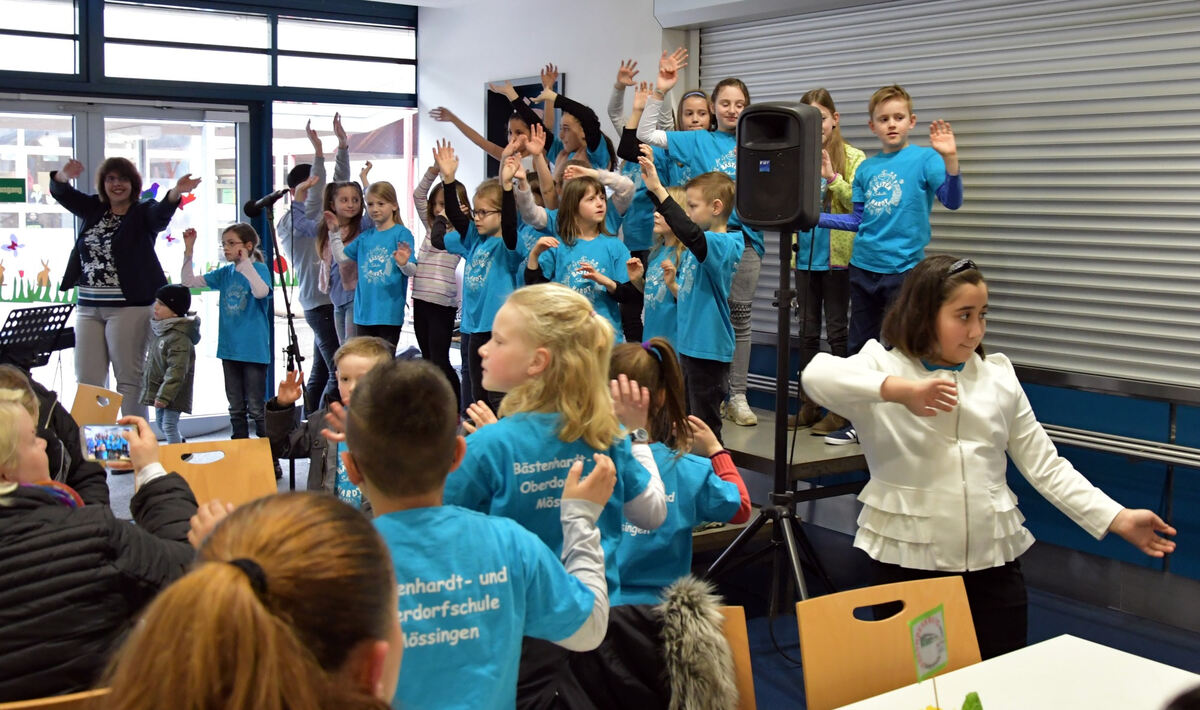 Rektorin Birgit Baumeister und Schüler heizten dem Publikum beim Frühlingstanz an der Bästenhardtschule ein. FOTO: MEYER