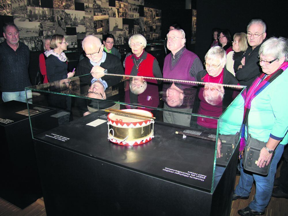 Eine Gruppe Mössinger hat sich die Ausstellung Anständig gehandelt - Widerstand und Volksgemeinschaft im Haus der Geschichte Baden-Württemberg in Stuttgart angesehen. Die Trommel von Eugen Ayen, die am Vorabend des Mössinger Generalstreiks im Einsatz war, steht als erstes Exponat am Beginn der zeitlich gestaffelten Widerstands-Ereignisse.