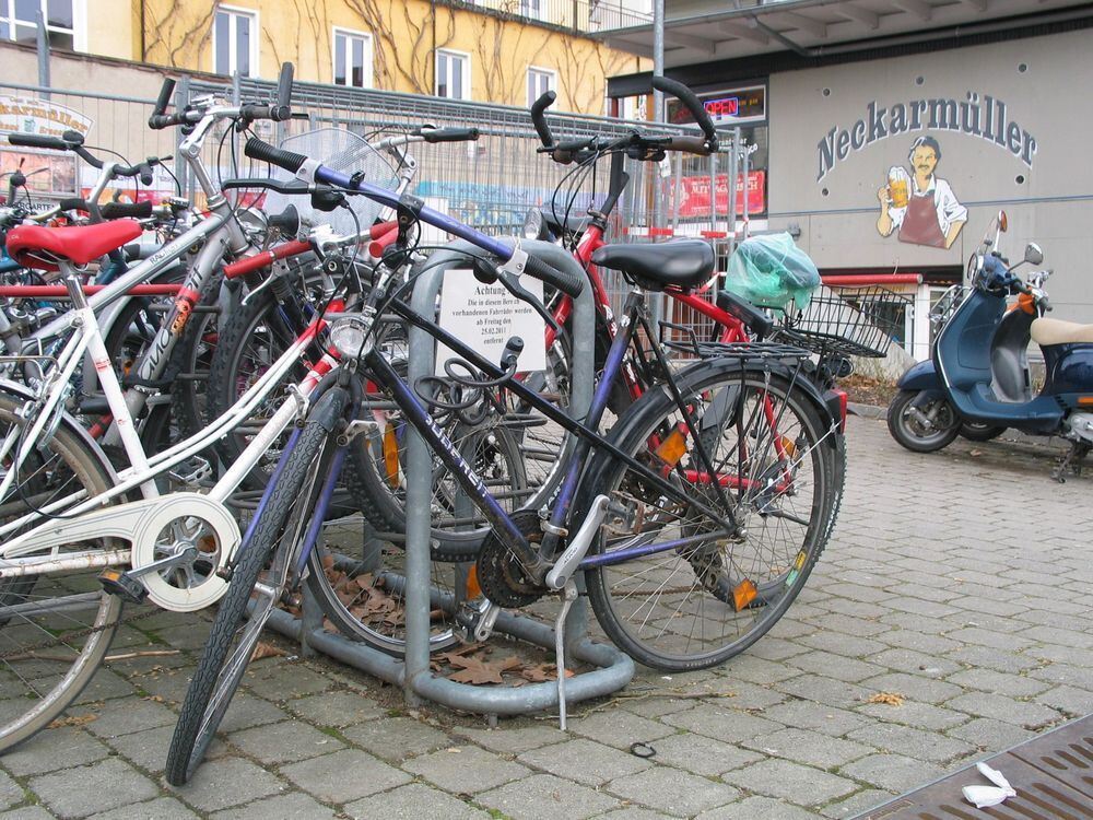 Vor der Neckarmüllerei muss ein Teil der Fahrradständer abgebaut werden, weil ein Fußgängersteg errichtet wird.