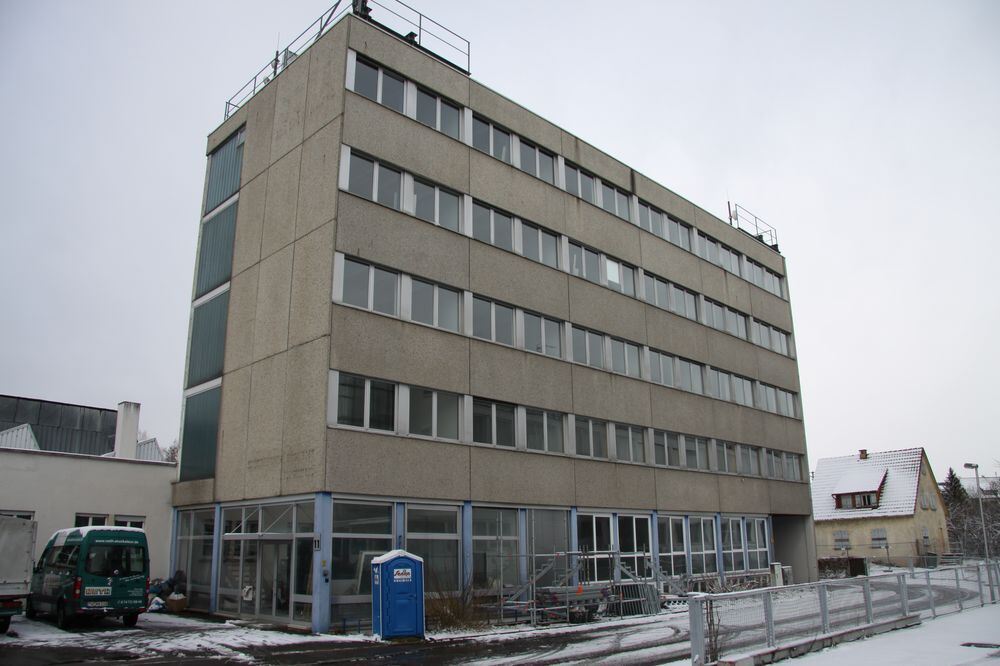 Das Hochhaus auf dem ehemaligen Waidmann-Areal in Mössingen neben der Pausa ist voraussichtlich von Februar an für Flüchtlinge bezugsfähig, bietet rund 130 Menschen Platz. Letzte Arbeiten zur Sanierung laufen gerade noch. GEA-FOTO: MERKLE