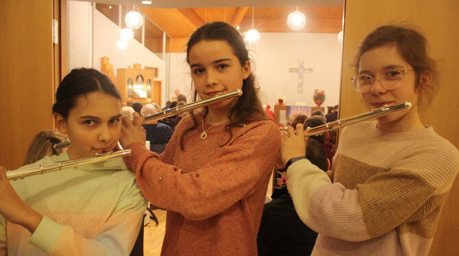 Sophia Schrey, Rebecca Baumgärtner und Angelina Kerk (von links) traten als Querflöten-Trio beim Adventskonzert der Jugendmusikschule Mössingen auf. FOTO: STURM