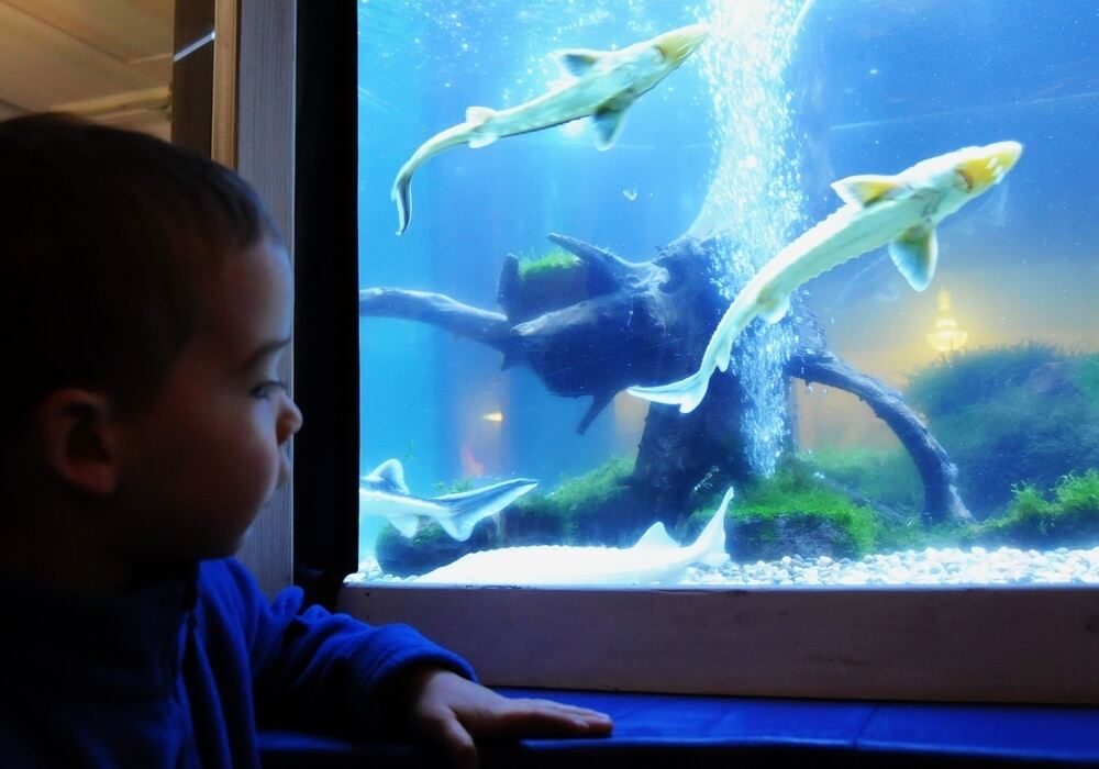 Kinderaugen tauchen vor Aquarien in die Unterwasserwelt ein.