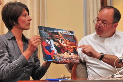 Eine Sensation: Tübinger Archäologen präsentieren der staunenden Öffentlichkeit Fotos vom Fundort der Venus vom Hohle Fels.