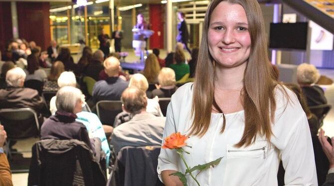 Die 16-jährige Sonja Greil bei der Preisverleihung in der Glashalle des Landratsamts.