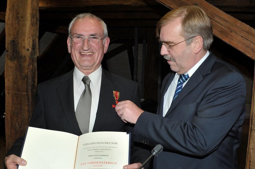Sitzt, passt und hält: Hubert Wicker (rechts) zeichnet Willi Kemmler mit dem Bundesverdienstkreuz aus.