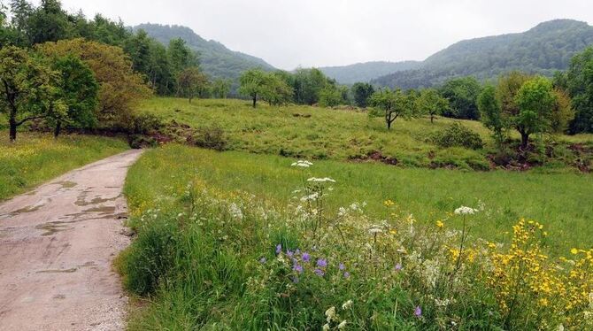 Trügerische Idylle: Erst beim zweiten Blick wird deutlich, dass auf dem Foto etwas nicht stimmt. Ein ganzer Erdteppich samt Obstwiesen hat sich Anfang des Monats über die Straße hinter dem Talheimer Sportheim geschoben. Vom Buchberg waren die Massen abgerutscht und erst der Weiherbach konnte sie aufhalten.