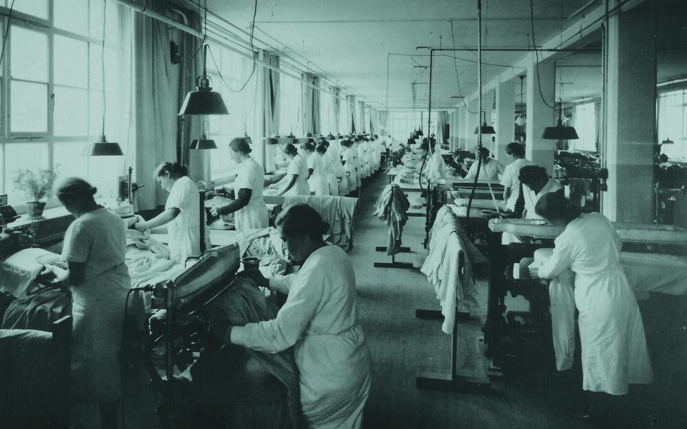 Bügelpressen und Nähsaal bei Zeeb & Hornung. Gesammelt hat die undatierten Aufnahmen der Arbeitskreis Schlossmuseum. ARCHIVFOTOS