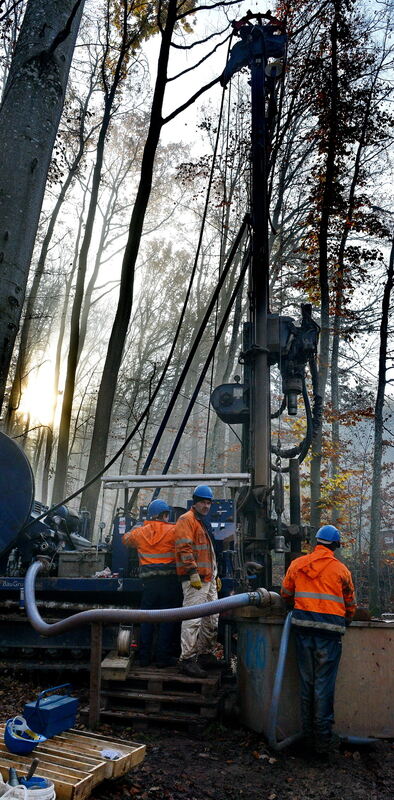 Probebohrungen für den Schindhau-Basistunnel mitten im Wald. Das macht neugierig. Immer wieder werden die Arbeiter von Spaziergängern angesprochen. FOTOS: NIETHAMMER