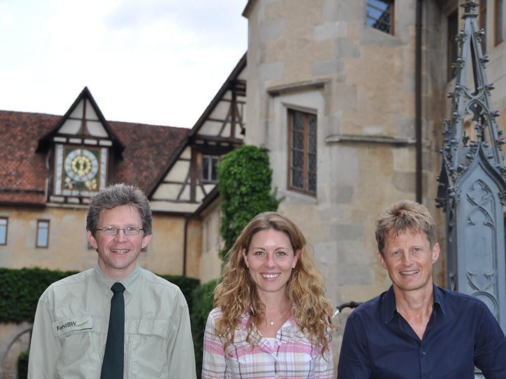 Ideen für Bebenhausen: von links Martin Strittmatter, Janna Weitkamp und Mathias Allgäuer am Brunnen vor dem Schloss.