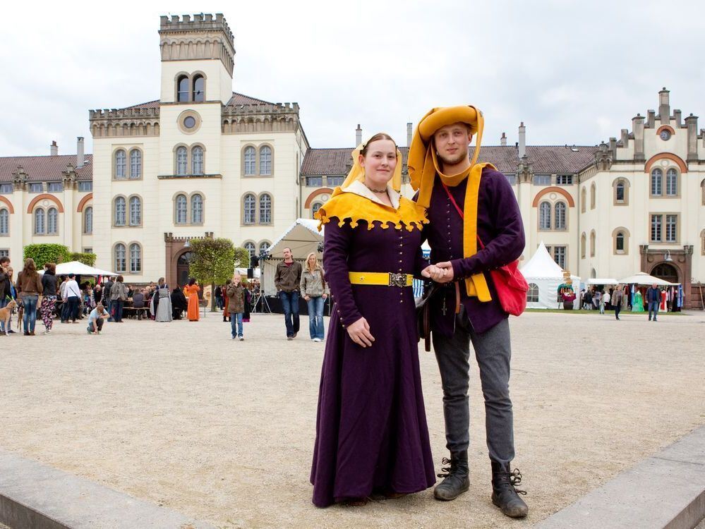 Mittelalterlich gewandet auf dem Mittelaltermarkt vor der im 19. Jahrhundert erbauten Thiepval-Kaserne. FOTO: MARTIN SCHREIER